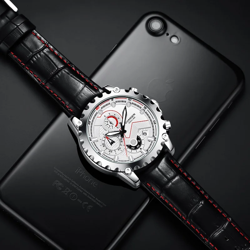 Часы GUANQIN Мужские кварцевые, водонепроницаемые, с кожаным ремешком