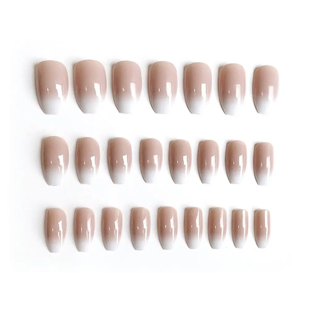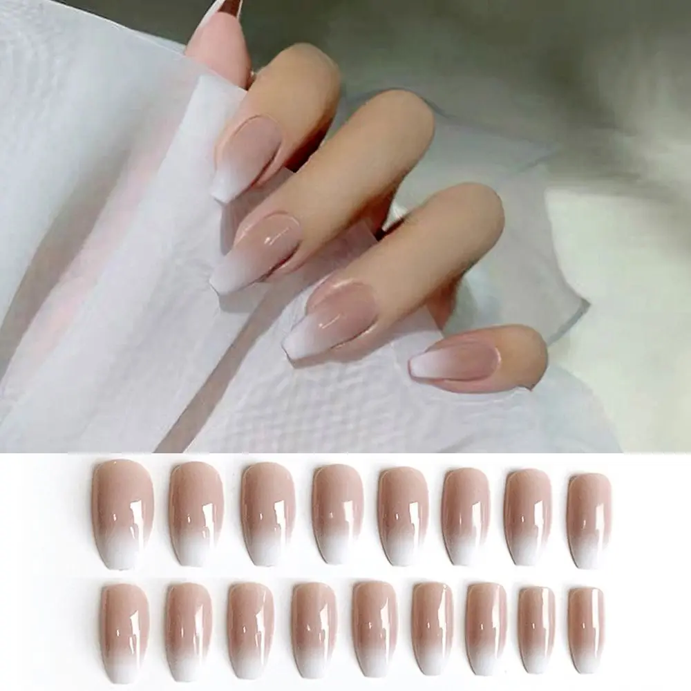 Глянцевые накладные ногти Омбре розовые телесные белые французские балерины гроб накладные ногти с градиентом естественное прессование накладные ногти многоразовая одежда