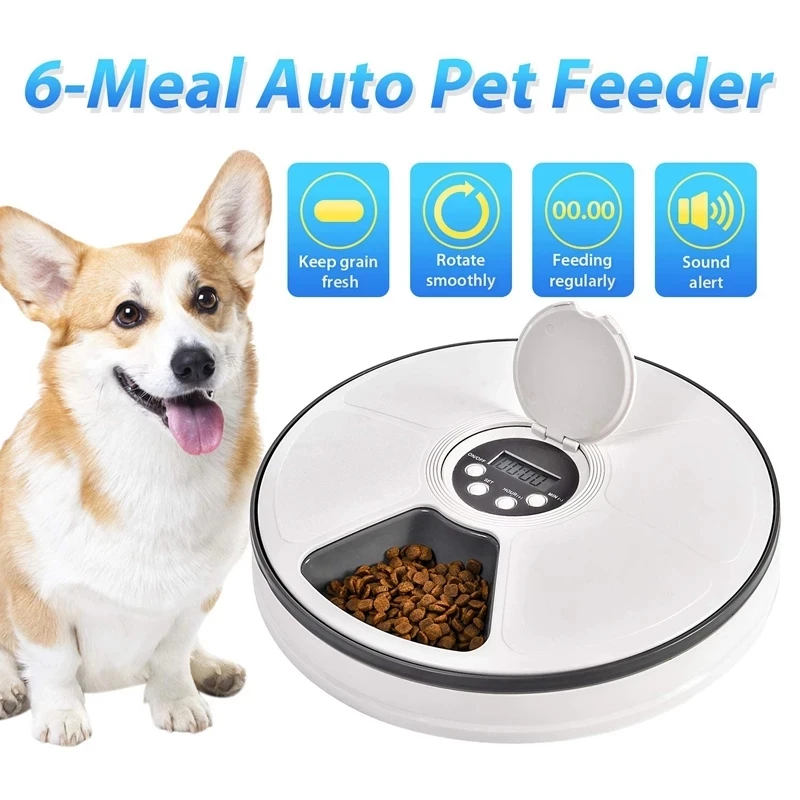 Автоматическая медленная кормушка для домашних животных, 6 блюд, дозатор Сухого Корма для кошек и собак, таймер на 24 часа, аксессуары для собак