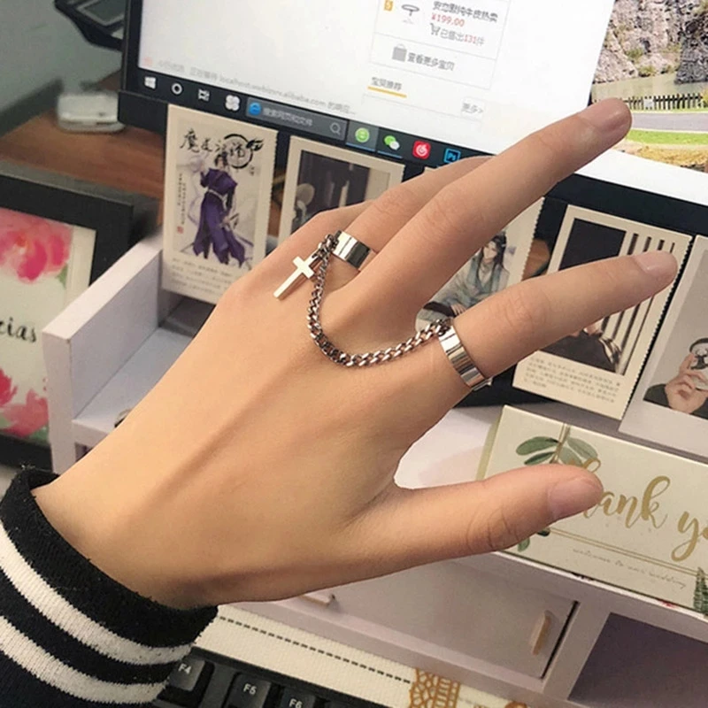 Посеребренное Ретро панк хип-хоп крест кольцо ручной палец цепь Рег...