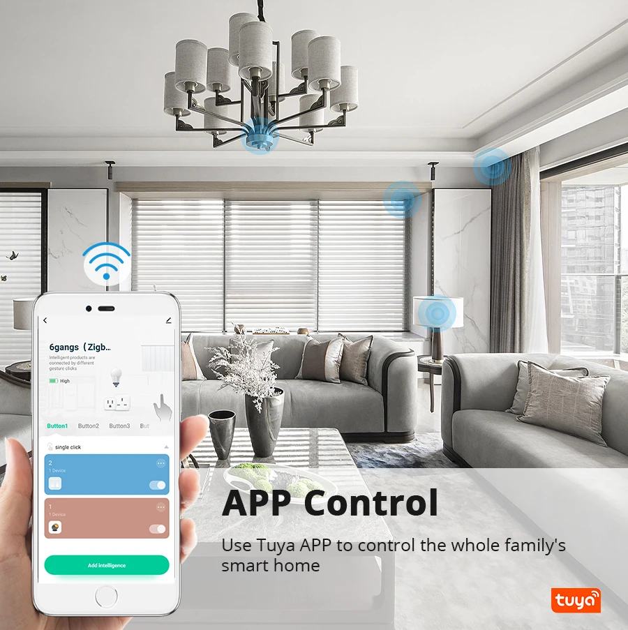 -Только через концентратор Tuya Zigbee или концентратор Smartthings, которые можно подключить к беспроводному переключателю zigbee и управлять другими умными устройствами Wi-Fi и zigbee-Питание от 2 батареек типа АА (не входят в комплект, нужно покупать самостоятельно)-Любой продукт контролируется приложением Tuya или приложением Smart Life