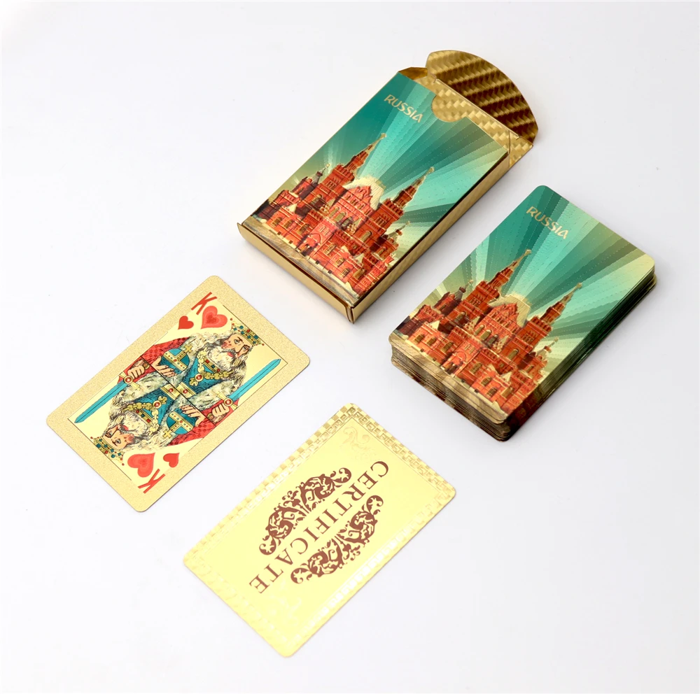 36 шт. картколода, новый дизайн, игральные карты для российского Покера из золотой фольги 24 К, ПВХ пластиковые водонепроницаемые прочные карты для покера, игральные карты