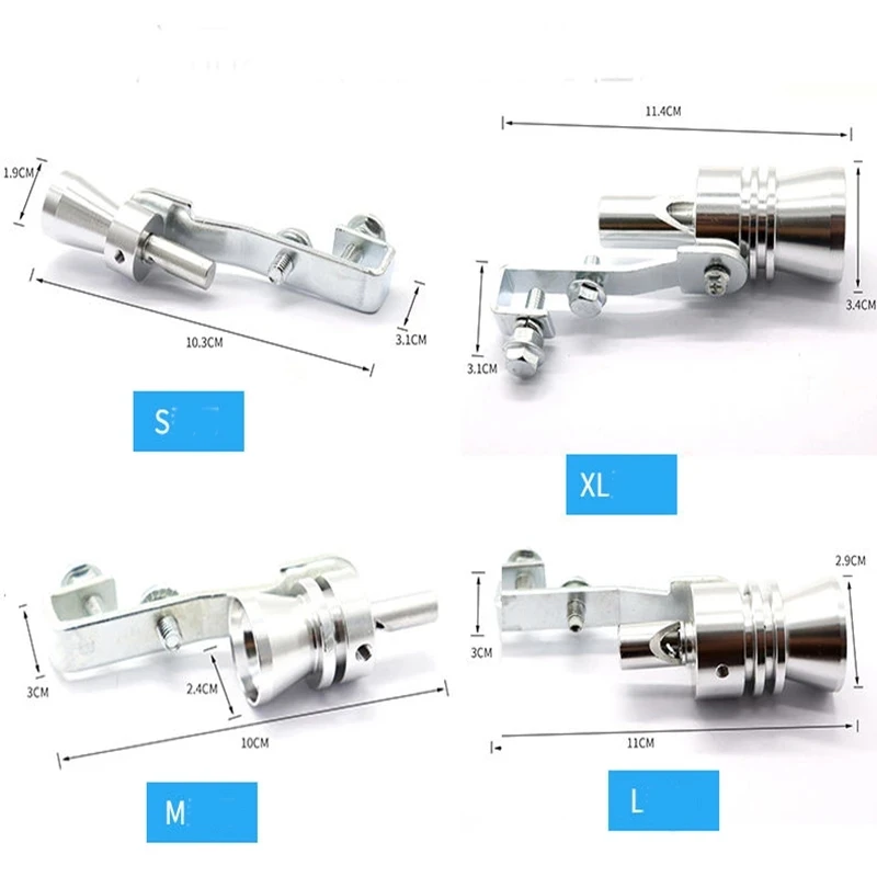 S 32-43 11 1000-1600cc М 37-48 11 1600-2000cc L 44-55 11 2000-2400cc XL 56-85 12 > 2400cc Особенности: 1, используется для того, чтобы ваш автомобиль звучал как Турбокомпрессор транспортного средства с турбонагнетателем системы или выпускной клапан. 2, сделанный из алюминиевый сплав, светильник вес, прочный и долговечный. 3. Универсальный турбо-свисток подходит для всех моделей. 4, простой и удобный в использовании и установке. 5. Потребности вашего автомобиля. Меры предосторожности 1. Этот турбо-звук не подходит для чрезвычайно изогнутых труб. Если кривизна небольшая, вспомогательный кронштейн может слегка сгибаться, чтобы соответствовать хвостовой трубе. См. Изображение ниже.