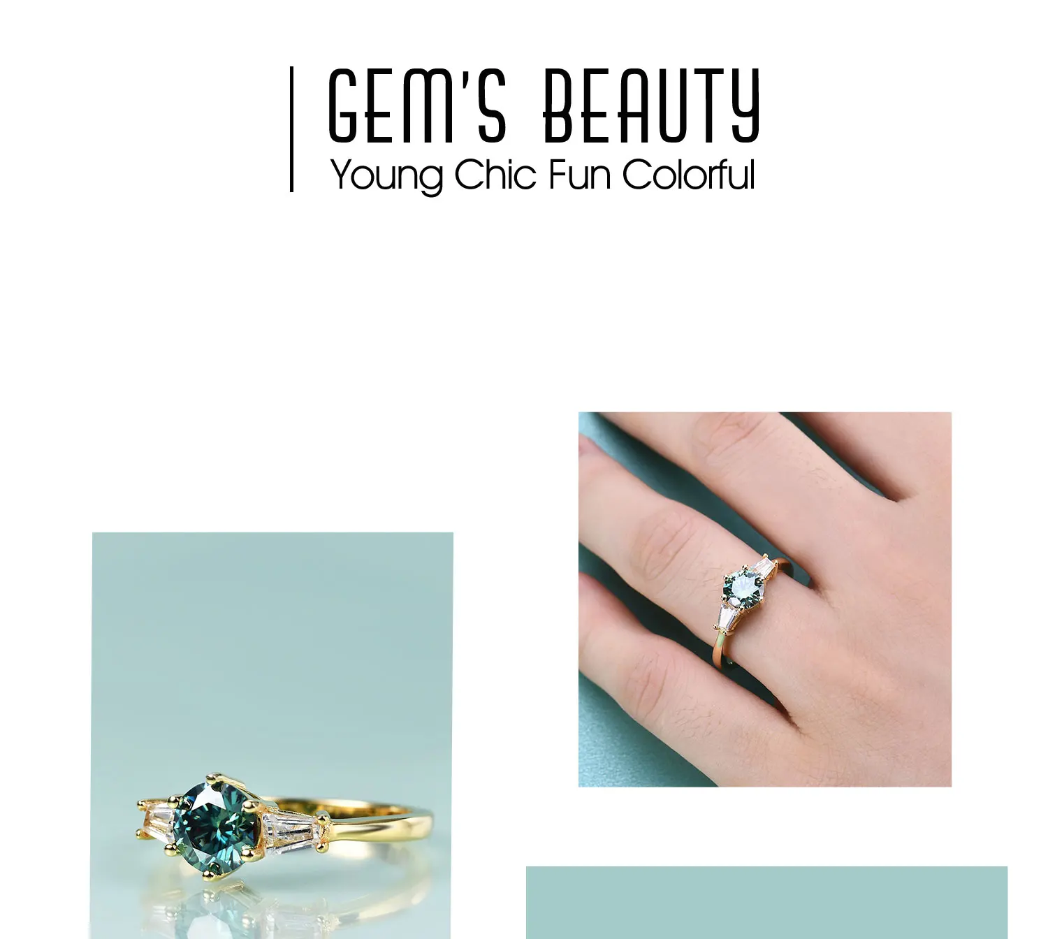 GEM'S BEAUTY, 14K, 10K, золотая, женская серебряная кольца с мусанитом, Натуральный светло-зеленый Муассанит 3-925 пробы