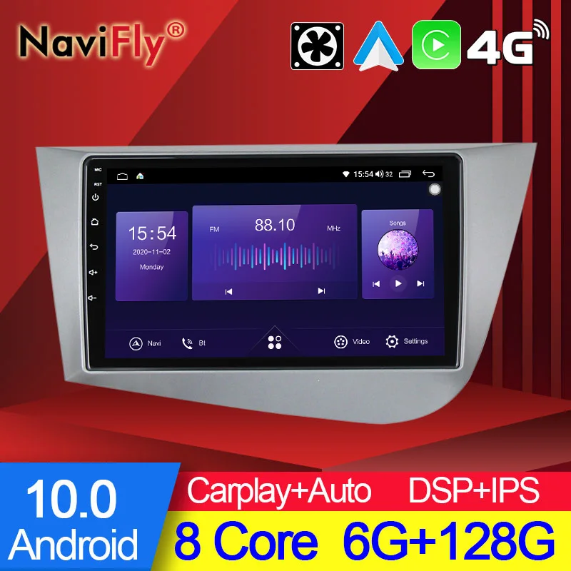 Автомобильный мультимедийный плеер NaviFly 7862C, 8 ядер, 6G, 128G, 1280x720, для Seat Leon MK2 2005-2012, GPS, RDS, No 2din, DVD