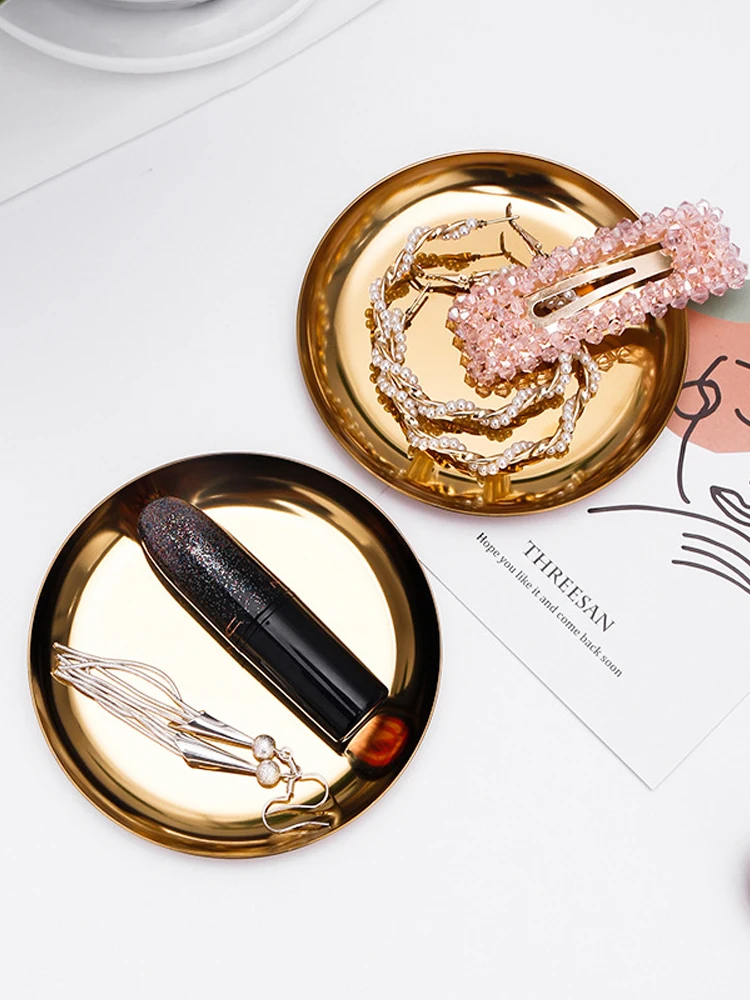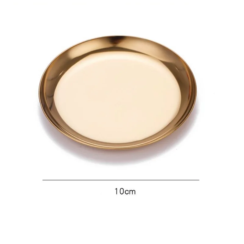 Круглая Золотая обеденная тарелка, 10 см, из нержавеющей стали, десерт, фрукты, торт, капкейк, поднос, помада, закуска, ювелирная тарелка, кухонные аксессуары
