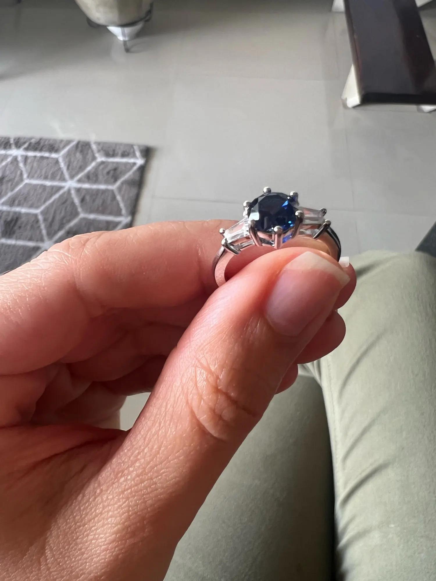Женское кольцо с сапфиром, из серебра 14 к, с тройным камнем