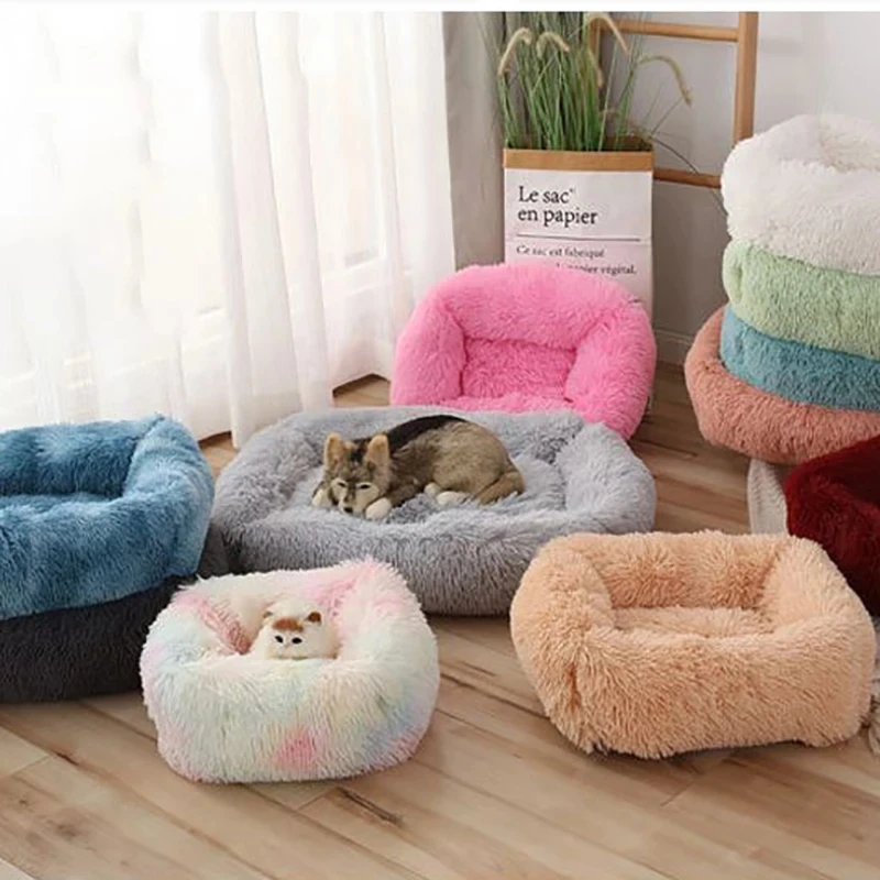 Длинная плюшевая квадратная кровать для собак, разноцветные лежанки...