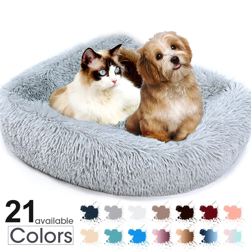 Квадратная кровать для собак, Длинные Плюшевые одноцветные кровати для домашних животных, кошачий коврик для маленьких средних и больших домашних животных, супер мягкие зимние теплые спальные коврики