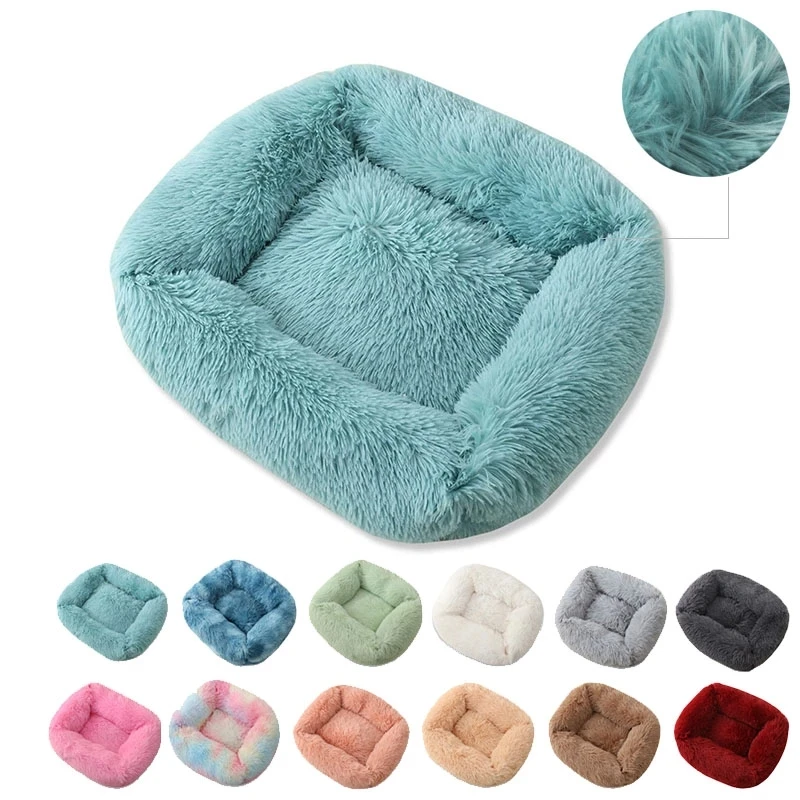 Однотонная квадратная кровать для собак, Длинные Плюшевые лежанки д...
