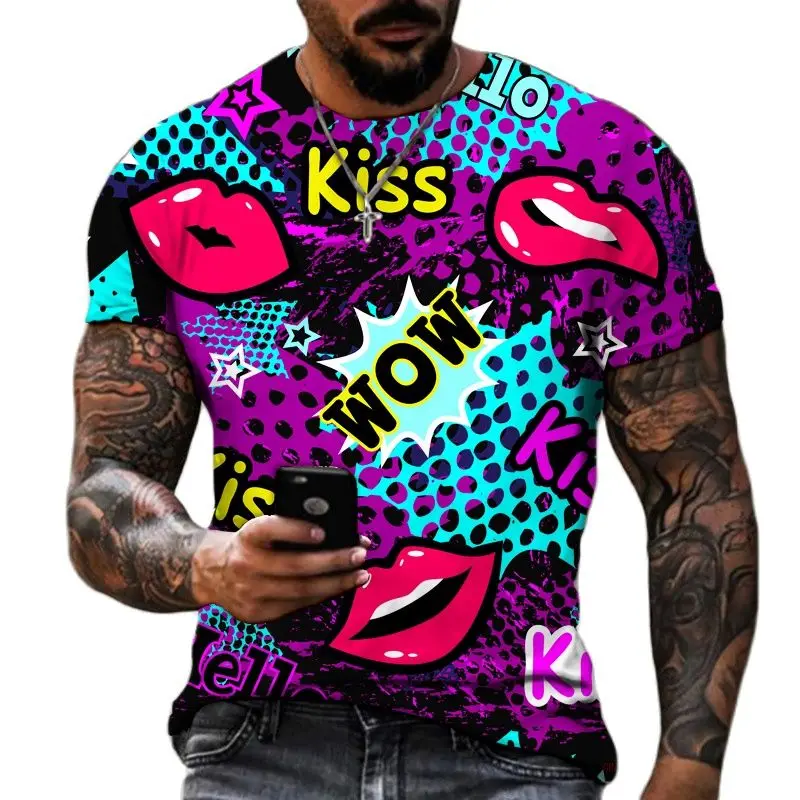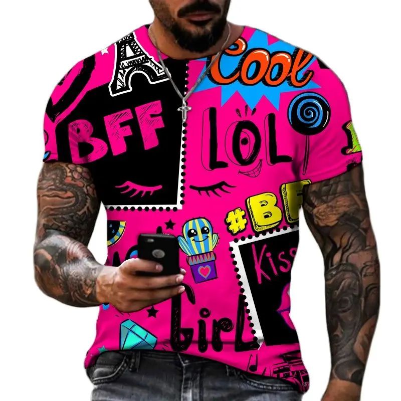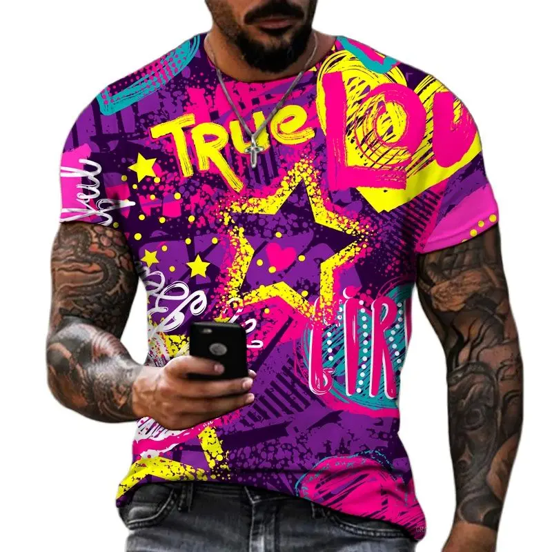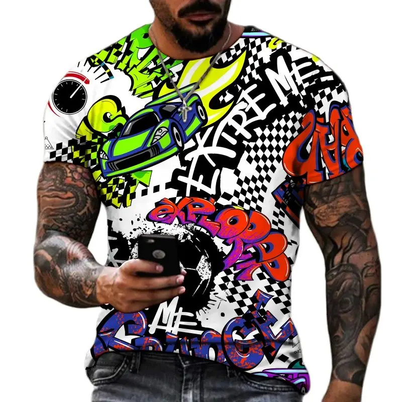 Футболка мужская с коротким рукавом и круглым вырезом, популярная тенниска с 3D-принтом, забавный стиль граффити, модная уличная одежда, повседневная спортивная майка в стиле Харадзюку, на лето
