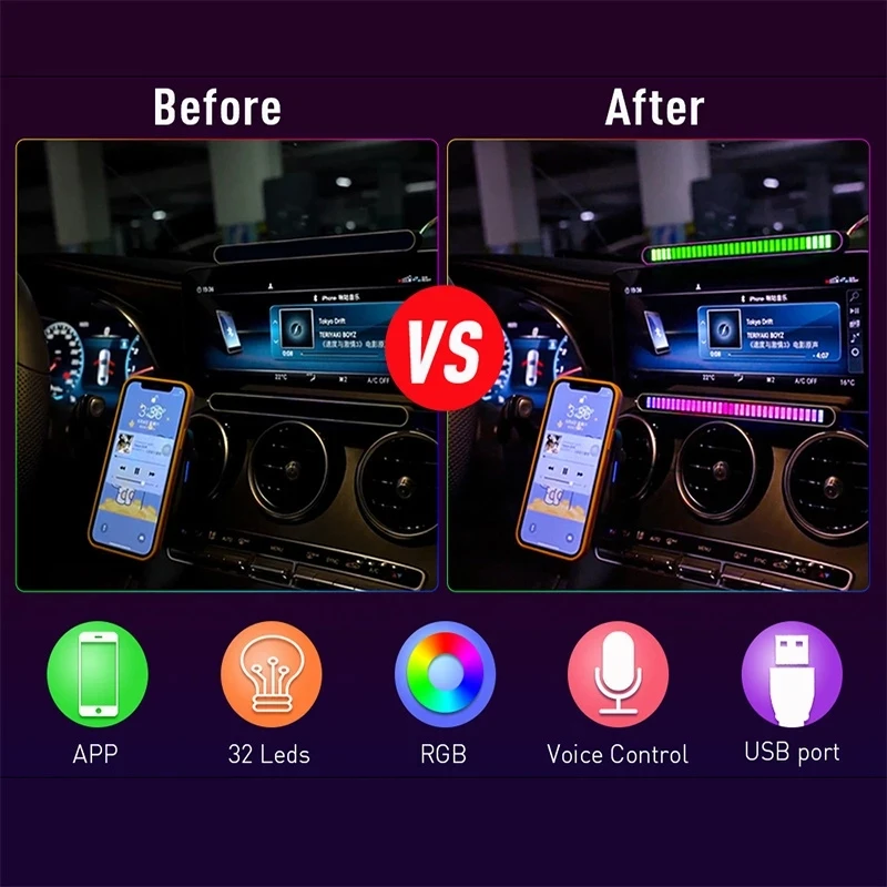 Автомобильный Bluetooth-светильник со светодиодной подсветкой, перезаряжаемый от USB-порта