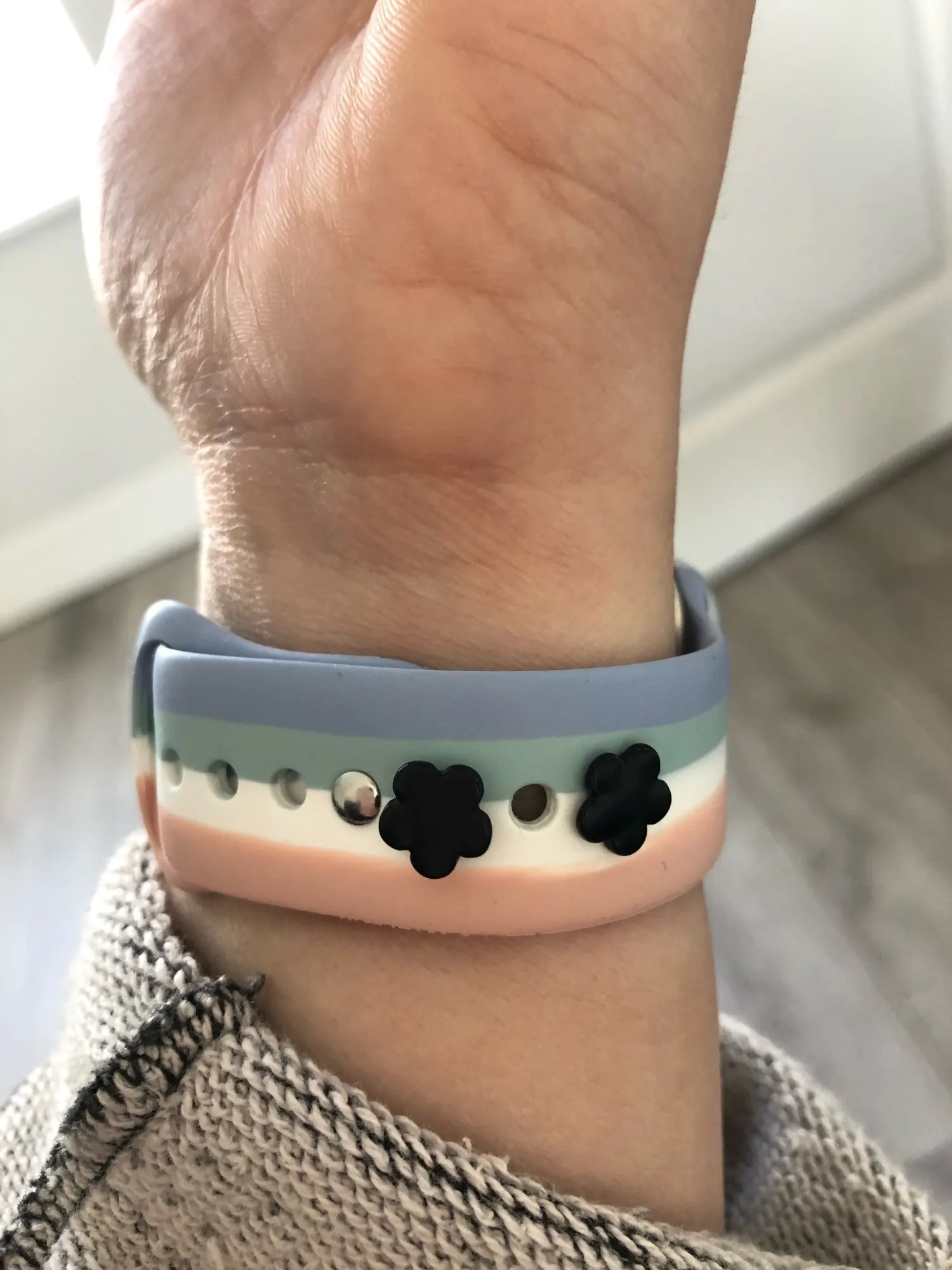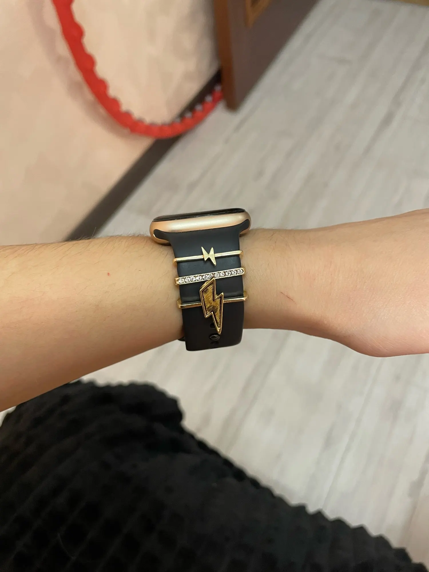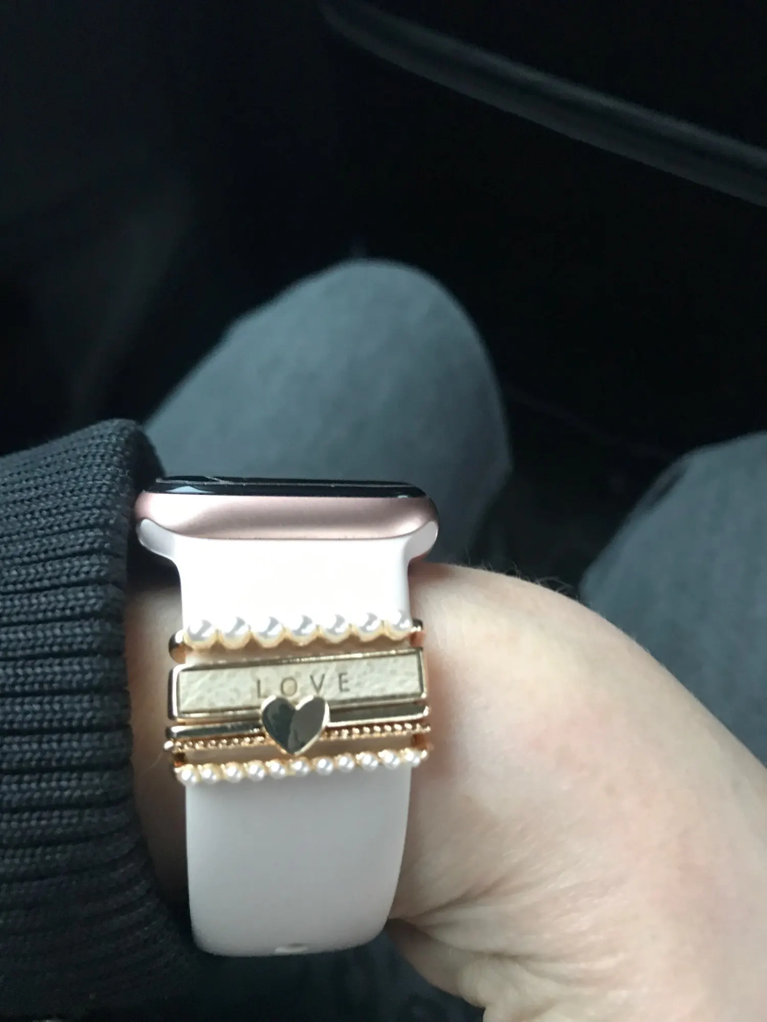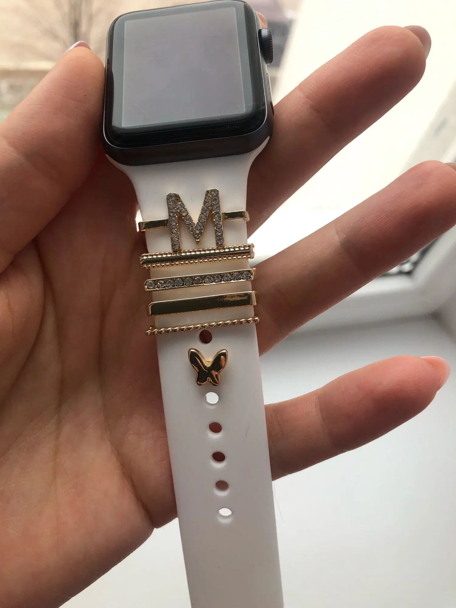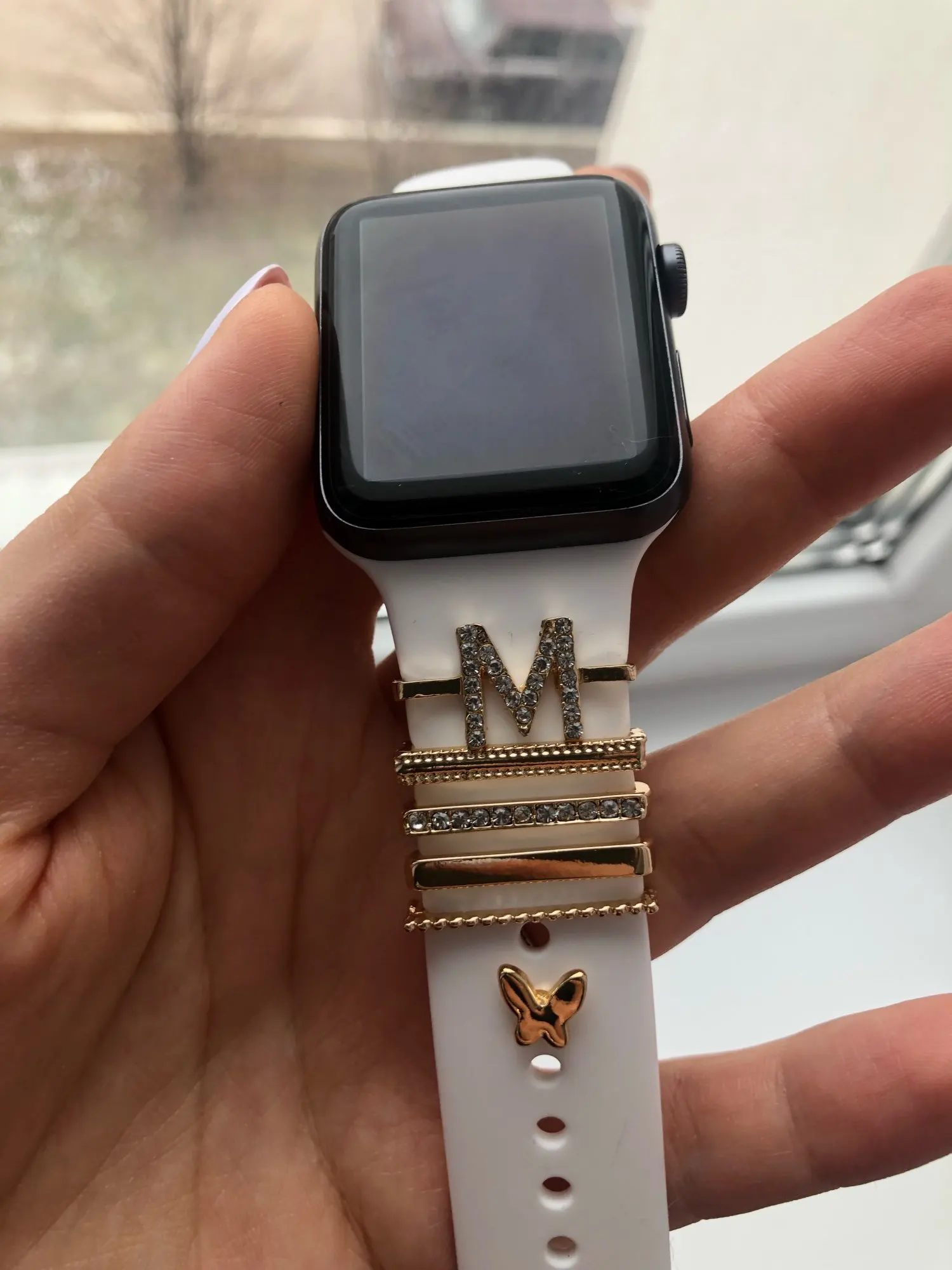Симпатичные подвески на ремешок для Apple Watch Продавец оперативно отправил товар. Доставка в Украину с момента заказа весьма быстрая 18 дней через новую почту в г. Ужгород. Товар пришел не повреждённым. Все соответствует описанию. Подвески на ремешок немного туго налазят, но это хорошо, потому что они таким образом не будут болтаться. Ничего не цепляет пока что. Подвески красиво блестят и их можно по разному комбинировать. ✨ Рекомендую товар и продавца