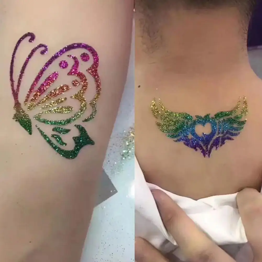 Набор для татуировок с блестками, новый набор для временных татуировок, 30 флеш-порошков, 60 шаблонов, 3 клея, 5 кистей, детский инструмент для творчества живопись для лица тела