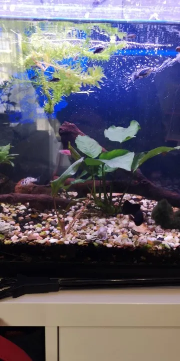 Светит хорошо, аквас зацвел (и растениями и зелёнкой на стекле)