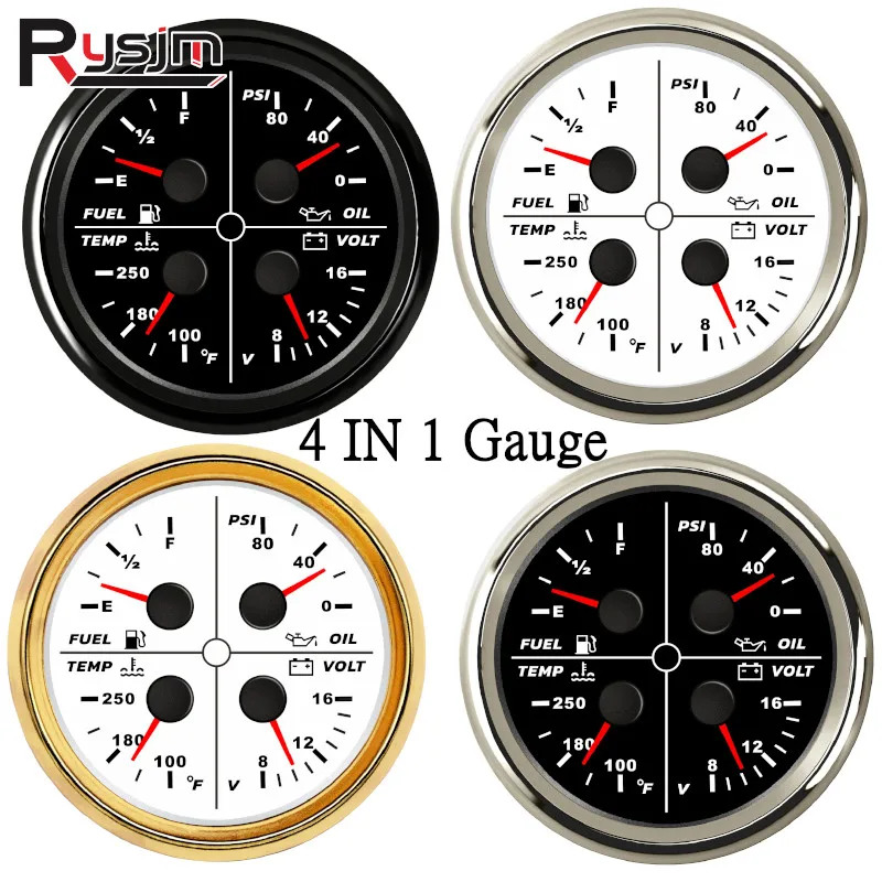 Многофункциональный Манометр 4 в 1, 0-190 Ом, для измерения уровня топлива, давления масла, температуры воды, вольтметр 8-16 В, для авто, морских судов, 12 В24 В