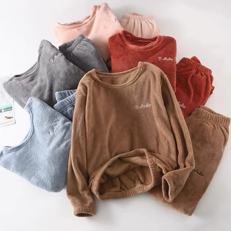 Парные пижамы из кораллового флиса для женщин осень и зима утепленн...