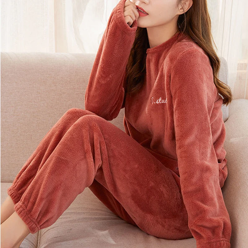 Зимние пижамные комплекты с вышивкой букв, женские плюшевые толстые...