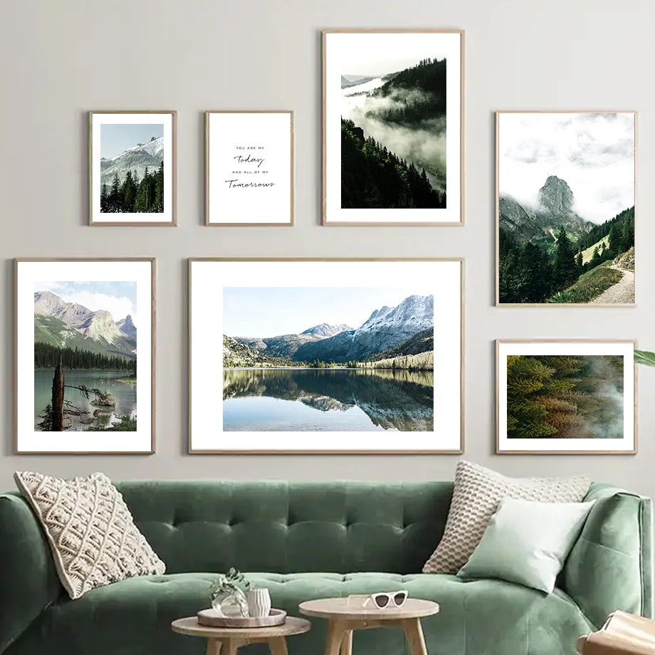 Настенная картина из природного ландшафта, гор, озера, леса, Скандинавская живопись на холсте, скандинавские постеры и принты, декоративные картины для дома