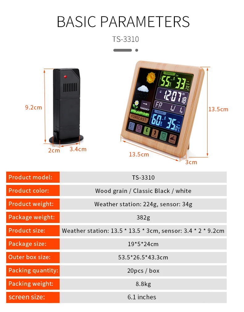 Домашняя автоматизация, беспроводной цветной гигрометр VA, цифровой ЖК-дисплей с барометром, календарем, будильником, отчетом о состоянии сна