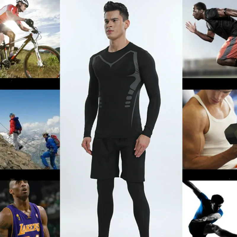 Спортивные мужские леггинсы, брендовые черные спортивные штаны для фитнеса и бега, быстросохнущие, для тренировок и йоги