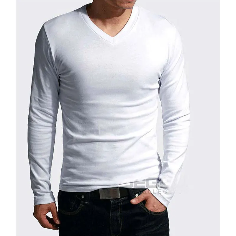 Мужская эластичная футболка с V-образным вырезом и длинным рукавом,...
