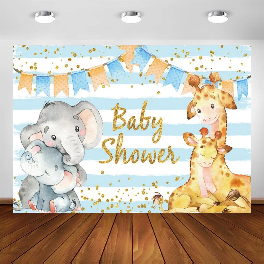 Фон для студийной фотосъемки с изображением слона жирафа синих полос диких сафари для новорожденных