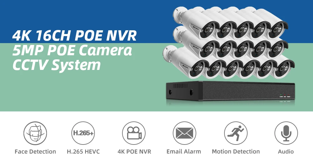 16ти-канального видеорегистратора CCTV Камера s 5MP Распознавание лиц 8ch POE CCTV Камера безопасности Системы комплект 4K открытый аудио видео наблюдения NVR Kit