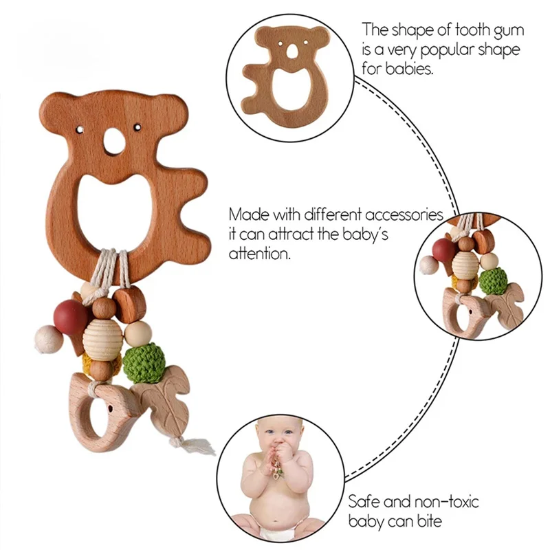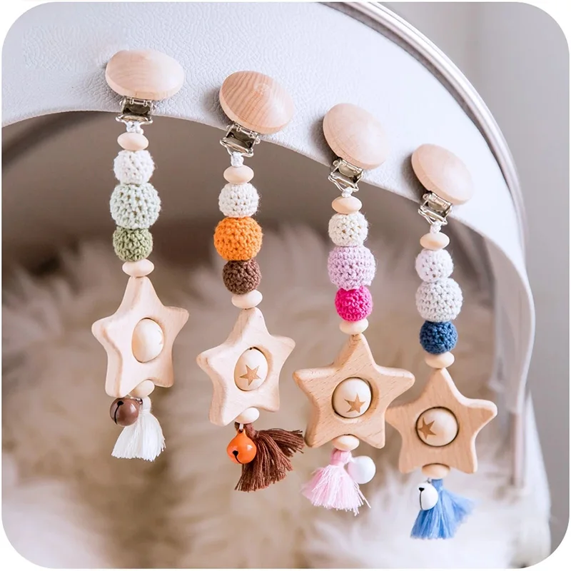 Деревянная Музыкальная погремушка, животное, звезда, Мобильный держатель, подвеска для прорезывания зубов, деревянная подвеска для тренажерного зала, грызунов, фотозажим, свод детской коляски, 1 шт.