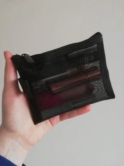Удобная маленькая, помещается зеркальце карандаш, пара помад. Сетка плотная. Доставка долгая в пятерку