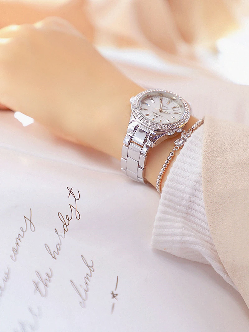 Женские наручные часы, часы из нержавеющей стали, серебристые, с кристаллами, 2021, в подарочной коробке, 2021