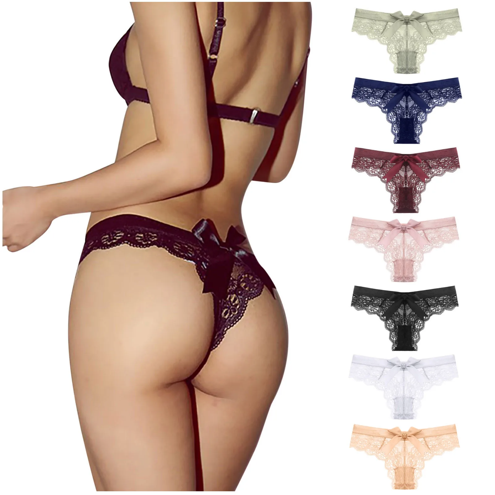 Сексуальные прозрачные трусики-стринги с бантом, Женские Симпатичны...