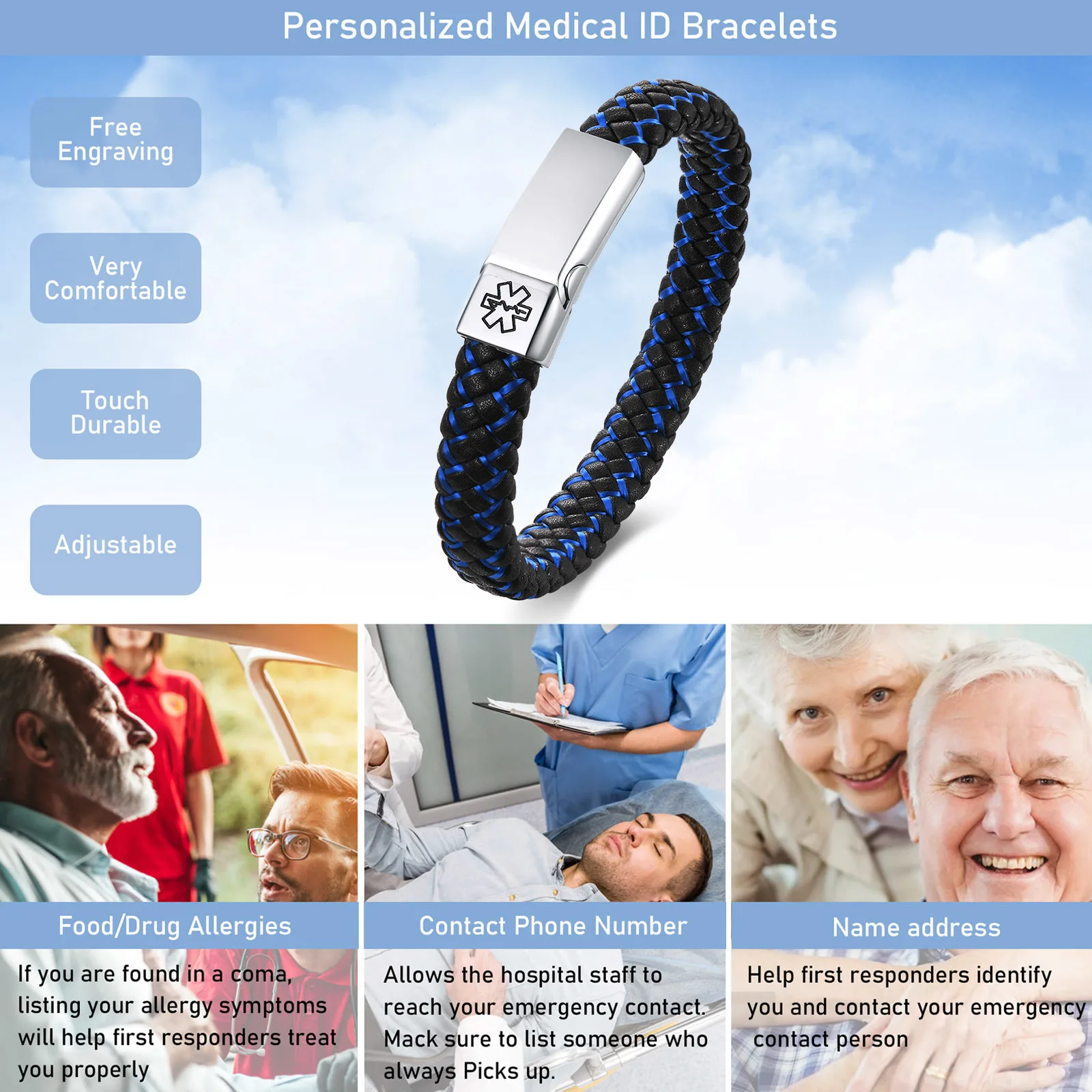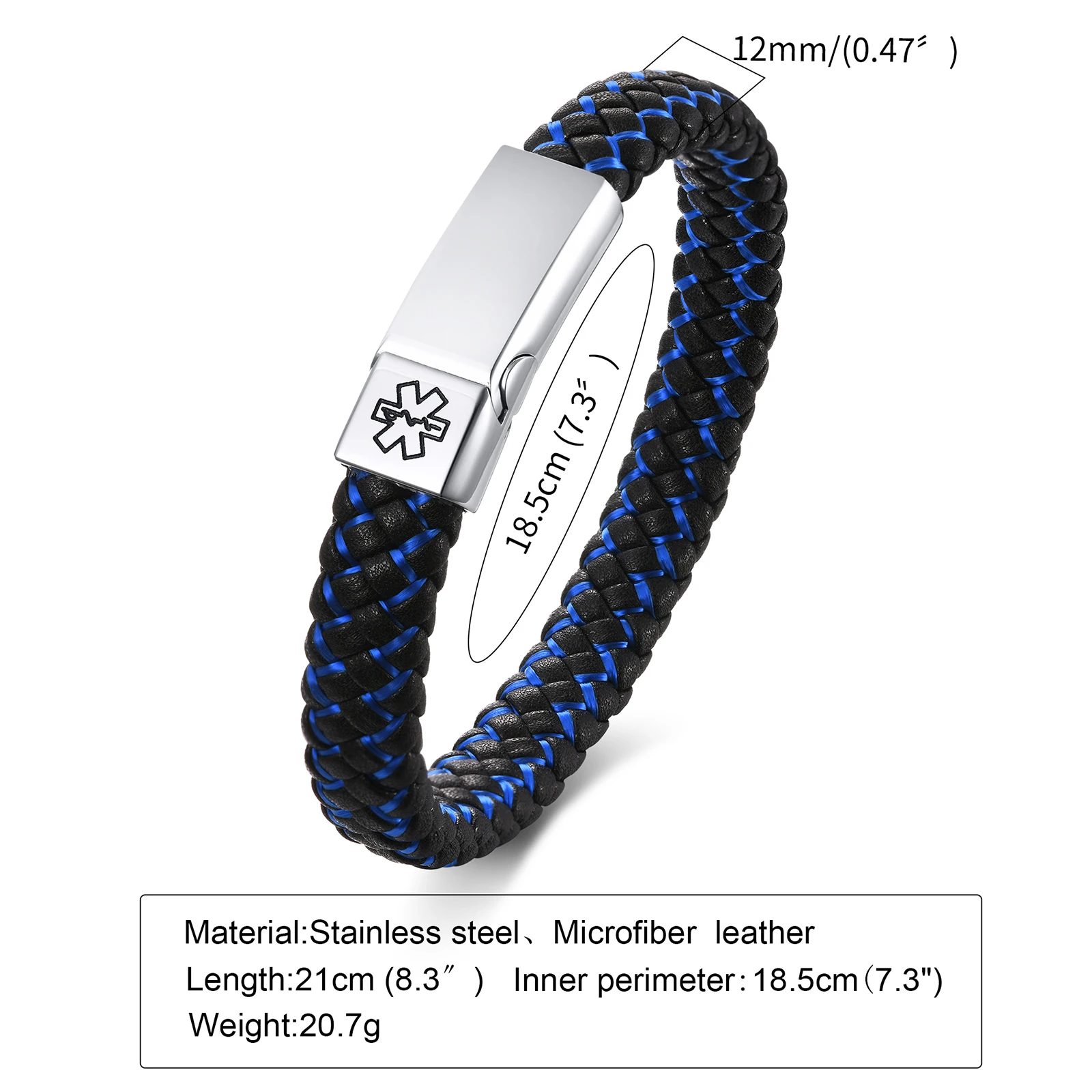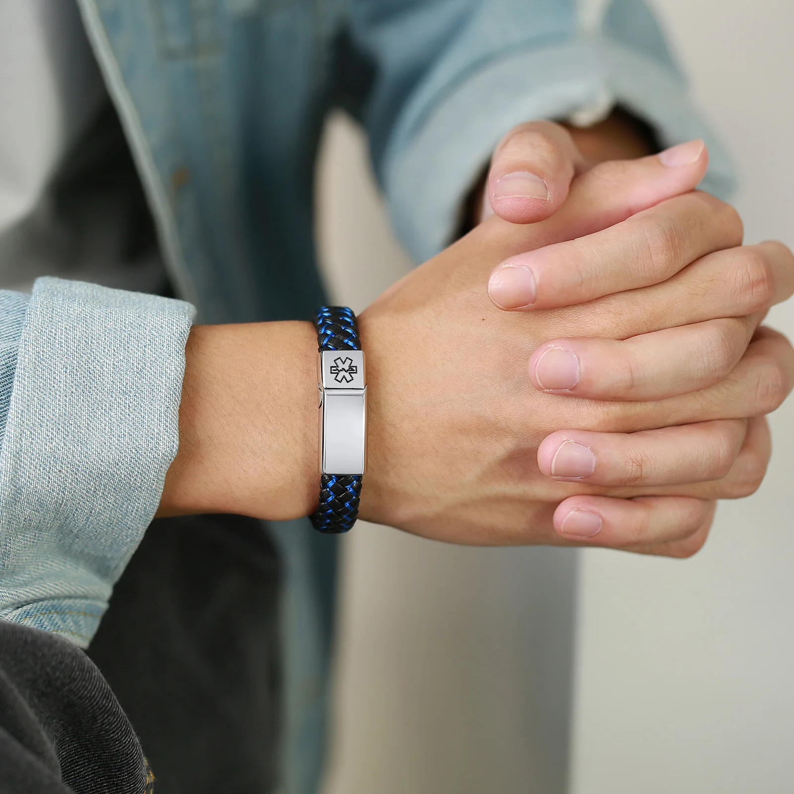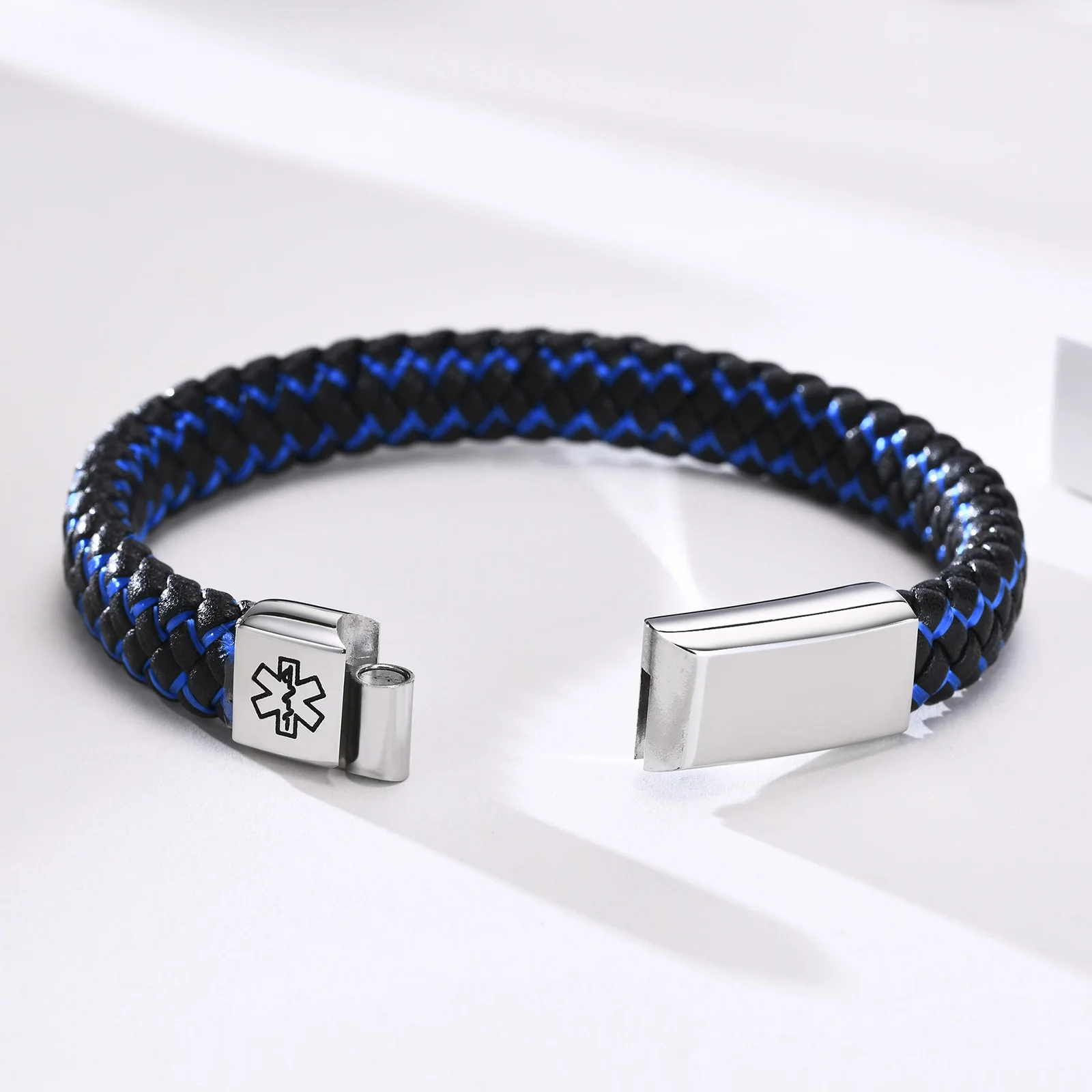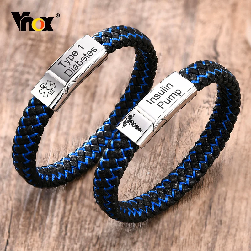 Мужские браслеты от аллергии с именем болезни Vnox, синие плетеные кожаные медицинские браслеты с привлекательной металлической застежкой
