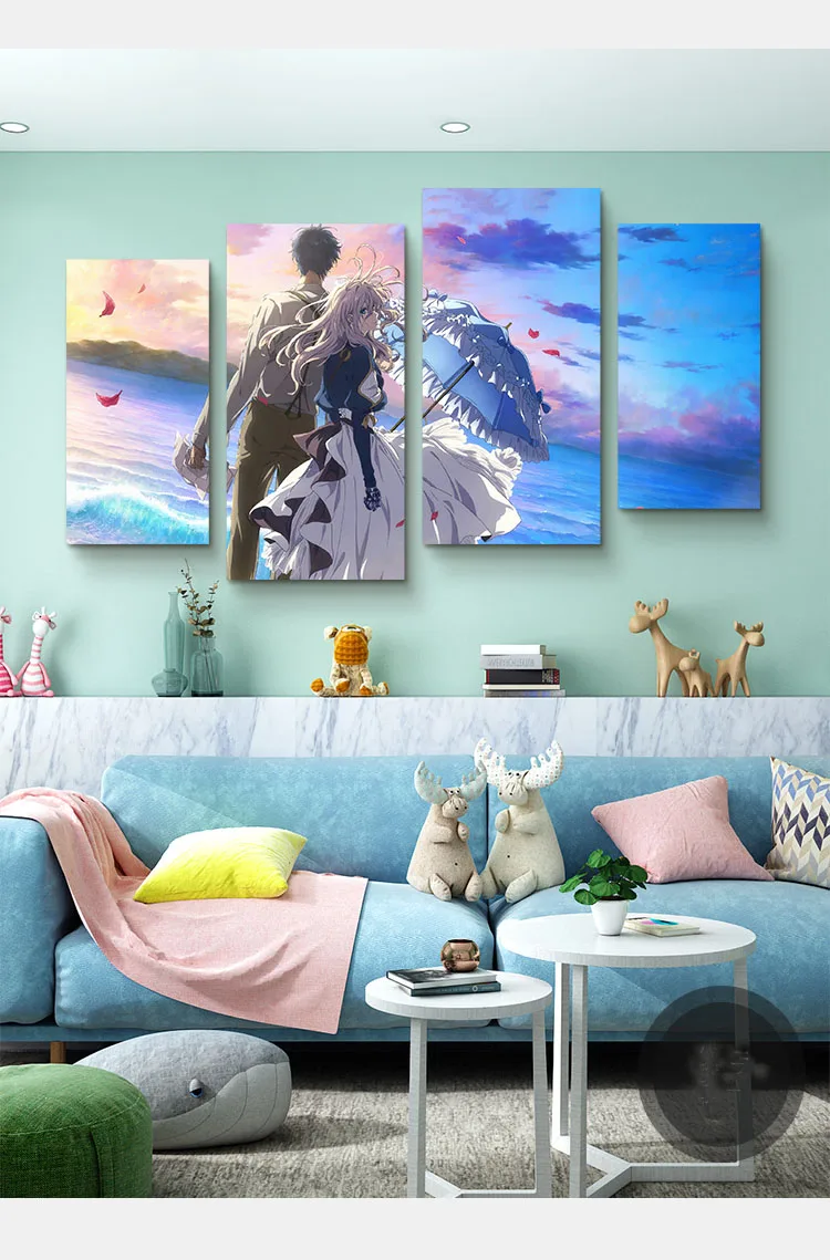 Постер фиолетовый Evergarden для домашнего декора, картина с принтом на холсте, Классическая Настенная картина, аниме, скандинавский постер, Модульная картина, декор комнаты