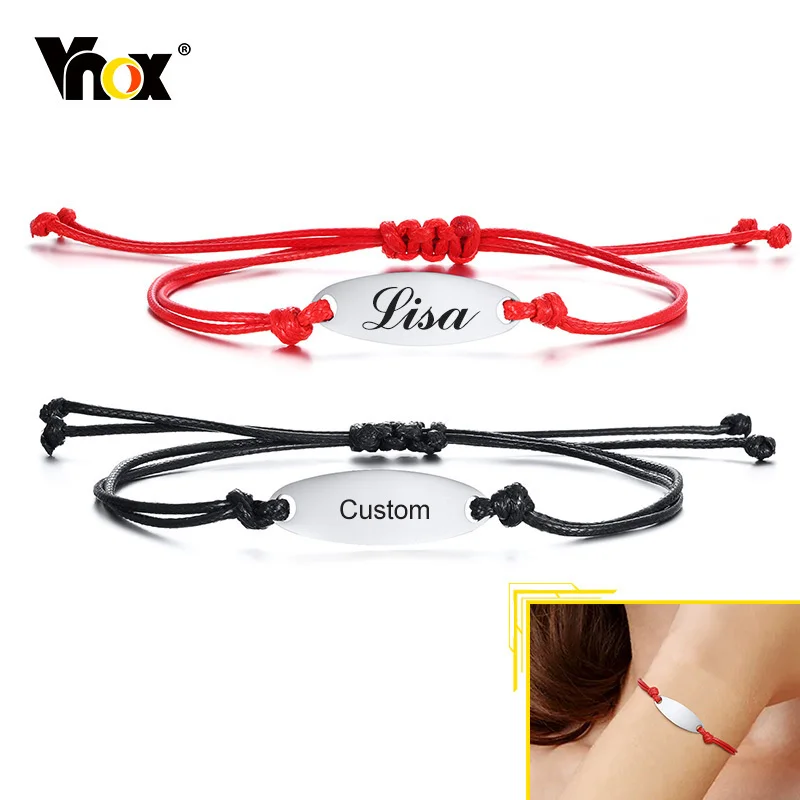Настраиваемый именной браслет Vnox для женщин и девушек, регулируемый простой веревочный браслет-цепочка