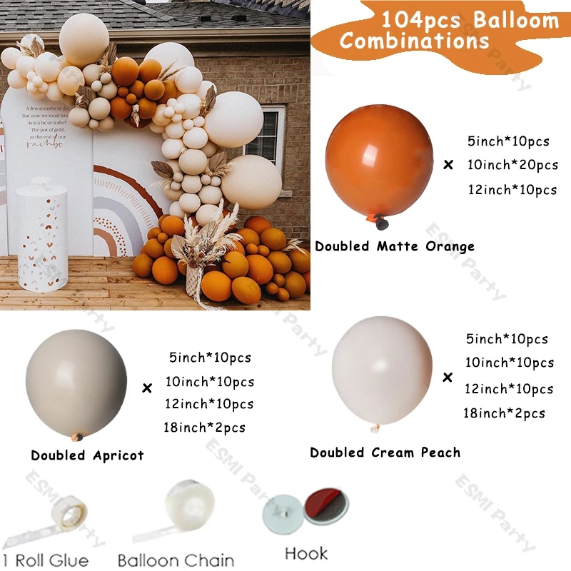 104 шт. Двойная матовая искусственная гирлянда, Двойная Цепочка, украшение абрикосового баллона, арка, день рождения