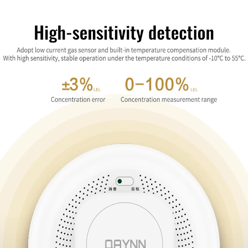 【Обнаружение высокой чувствительности】Использование низко-токовых газовых датчиков, встроенный модуль компенсации температуры, с высокой чувствительностью, точной сигнализацией, для предотвращения пожаров.
