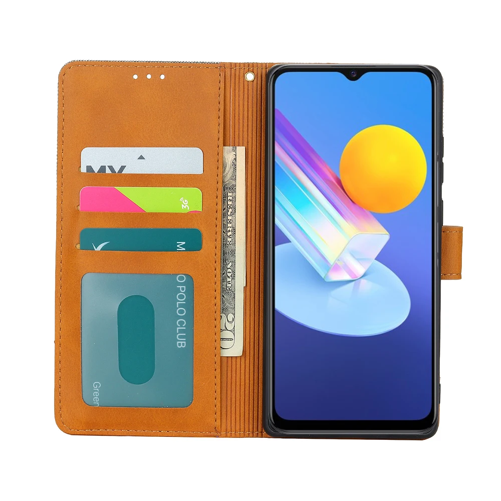 Кожаный флип-чехол Y21 для Vivo Y21 2021, чехол-кошелек с подставко...