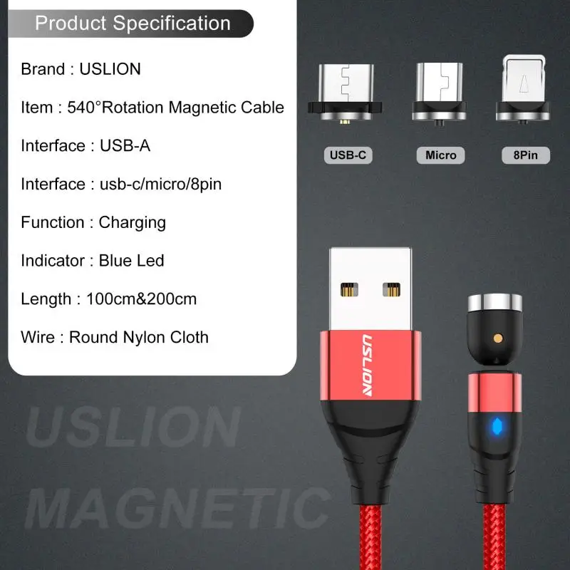 Название продукта: 2020 Новый Магнитный кабель для передачи данных с круглой головкой 540 °