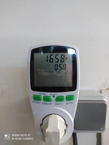 Заказали 19.10, получили 23.10. Упаковка была нарушена, но всё целое, ничего не повреждено. Батареек в комплекте нет, но продавец об этом предупреждает. Работает от сети без них, я так понимаю, они нужны для сохранения данных, настроек, когда его отключаешь из розетки. С настройками пока не разбирались. Фото включенного водонагревателя в прибор. Экран хоть и без подсветки, но видно всё хорошо.