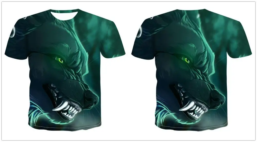 Мужская футболка с коротким рукавом, с 3D-принтом волка, лето 2021