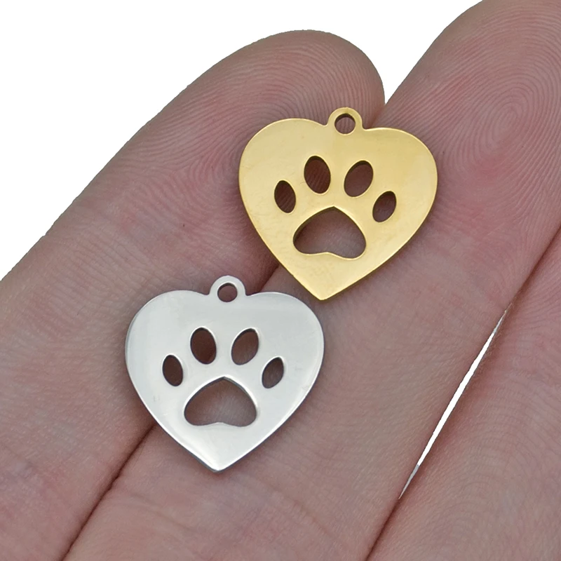 5 шт., подвеска из нержавеющей стали с сердечком и золотым шармом, полые медвежонок, собака, лапа, амулеты, сделай сам, ювелирное изделие, ожерелье, серьги