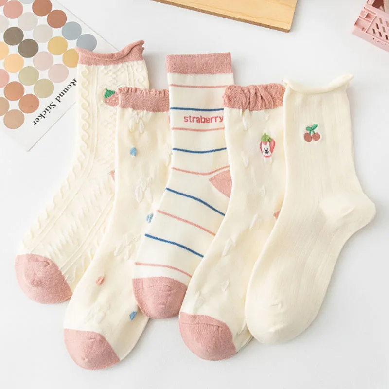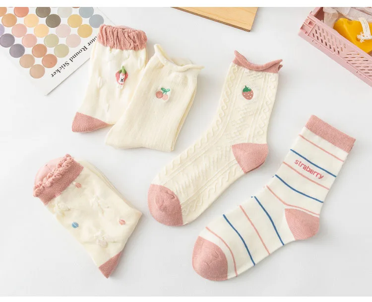 Носки с рисунком клубники, милые носки в стиле Харадзюку, женские н...