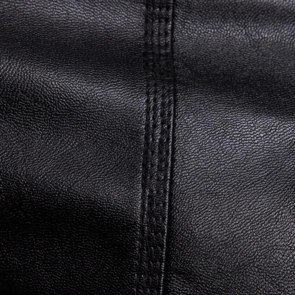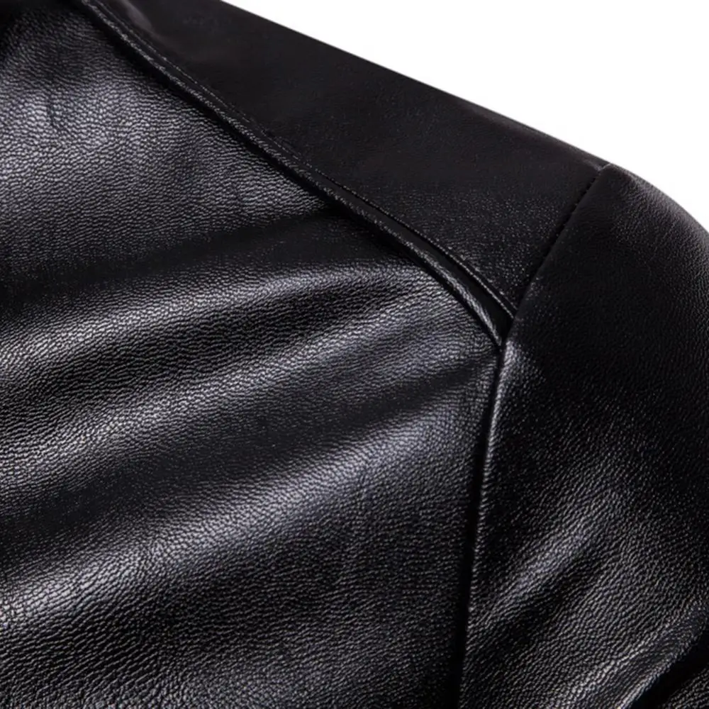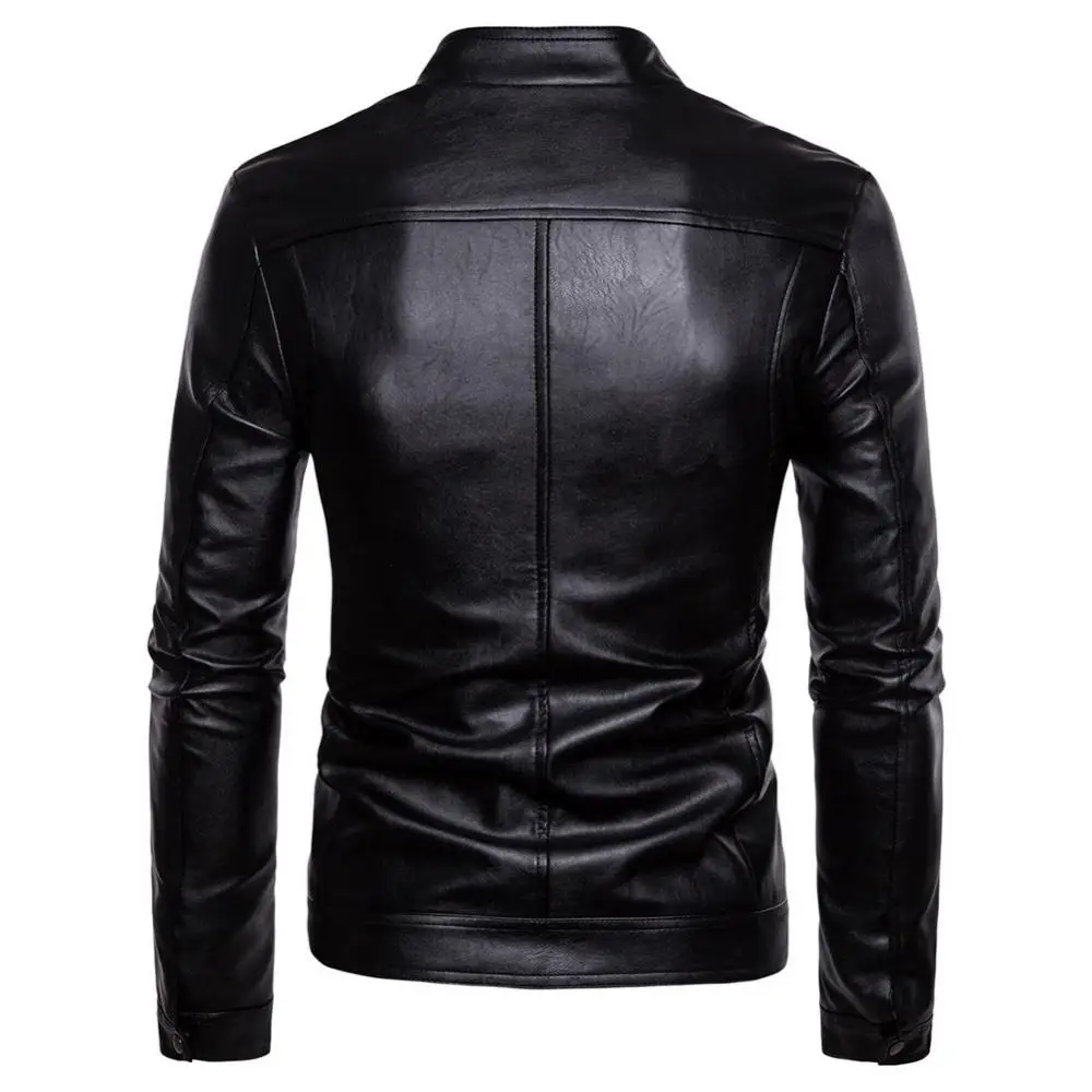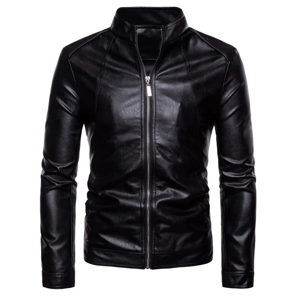 Мужская мотоциклетная куртка из искусственной кожи, однотонная куртка на молнии с воротником-стойкой и длинным рукавом