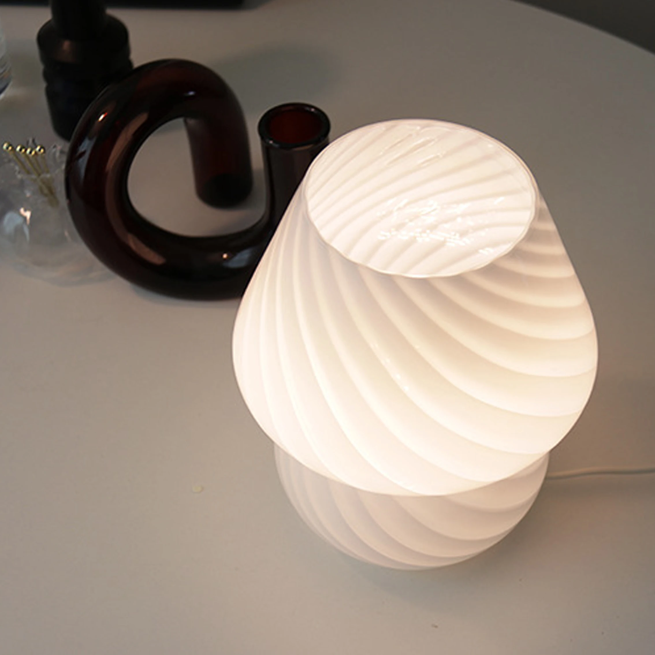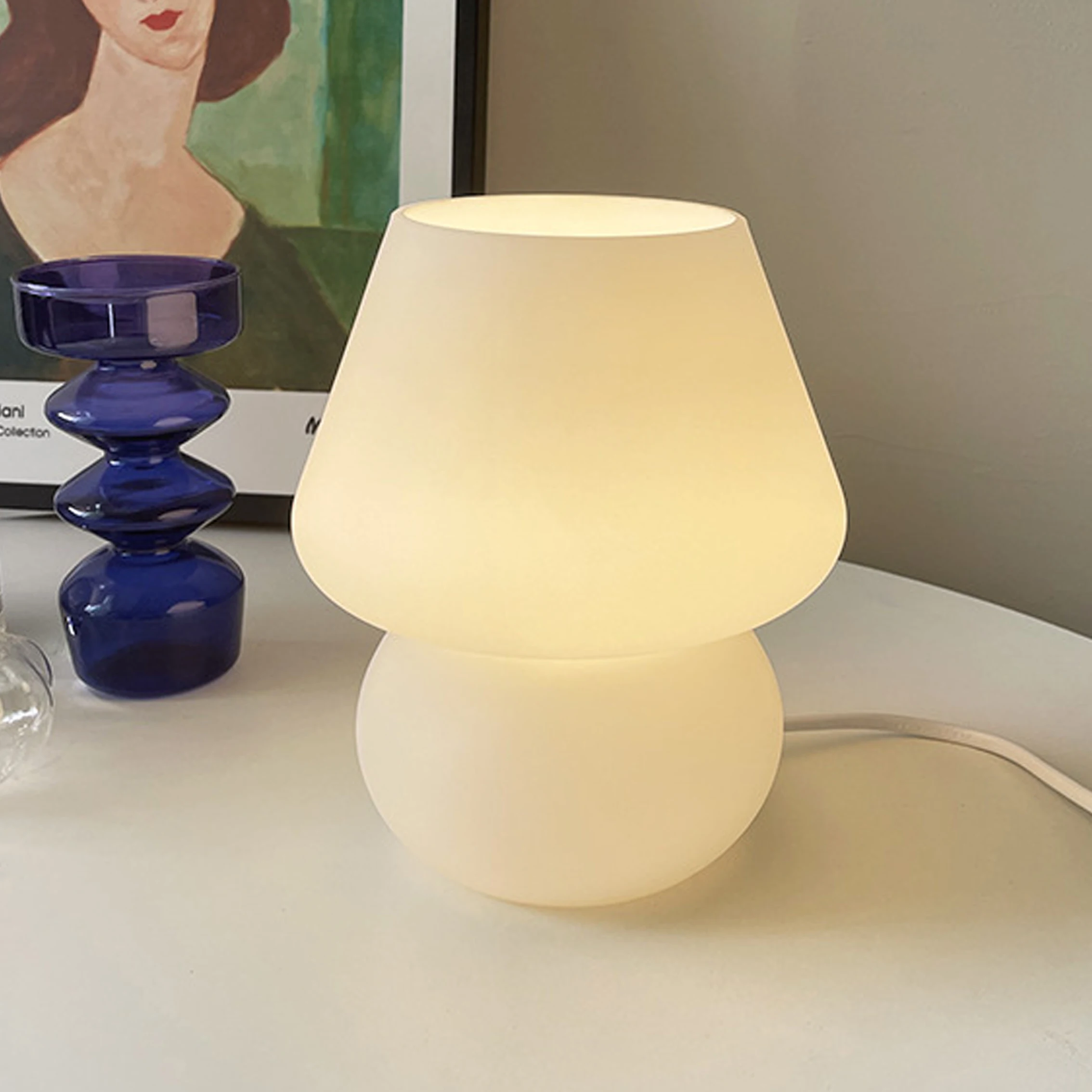 Лидер продаж светодиодный ная маленькая стеклянная настольная лампа для спальни, прикроватного столика, детской комнаты, настольное освещение, настольное освещение, Витражная лампа, милая лампа