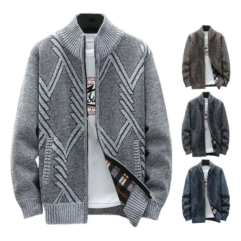 Осенне-зимний мужской свитер, пальто из искусственного меха, шерстяной свитер, куртки для мужчин на молнии, трикотажное плотное пальто, теплый повседневный вязаный кардиган