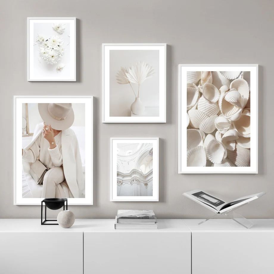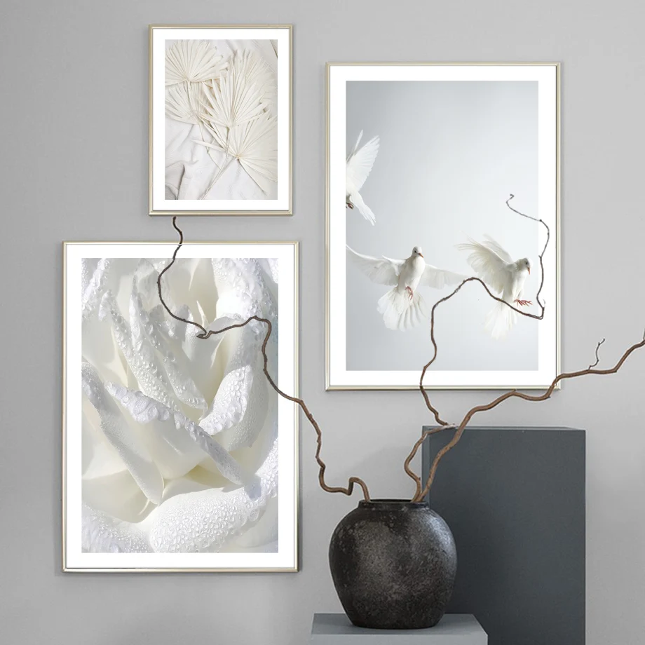 Женская Розовая белая Пальмовая раковина голубь Роскошная настенная живопись холст скандинавские постеры и принты настенные картины для декора гостиной