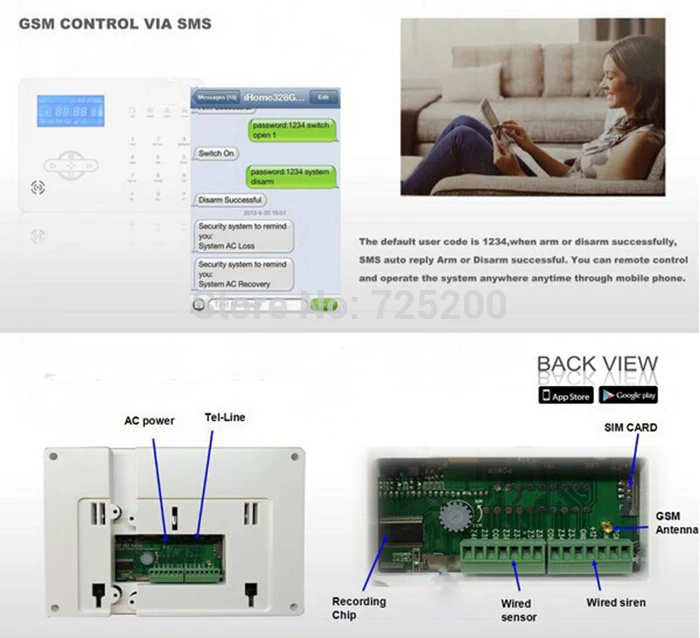 3. Встроенный GSM модуль, поддерживает вызов или отправку sms-сообщения на мобильный телефон, когда срабатывает сигнализация