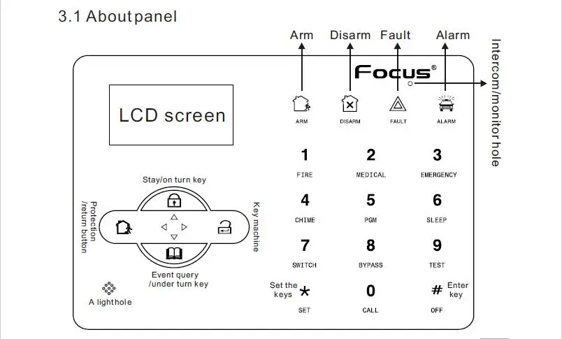 2. Позволяет установить тел-линия вкл/выкл мониторинг состояния/поворот для использования GSM сигнализация передачи автоматически