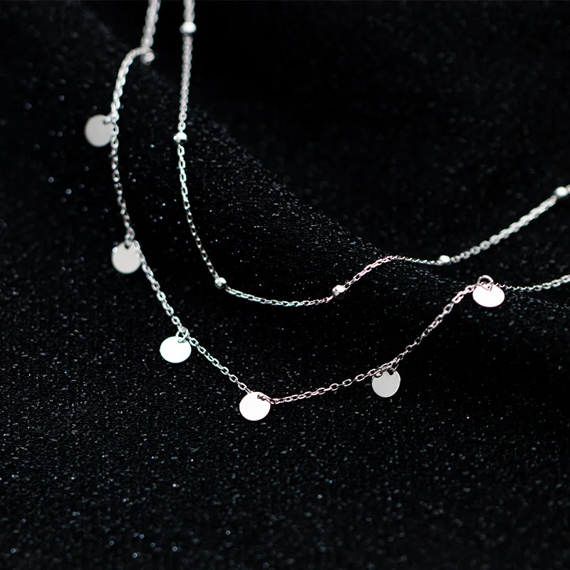 Ожерелье женское Двухслойное из серебра 925 пробы с дисковыми бусинами